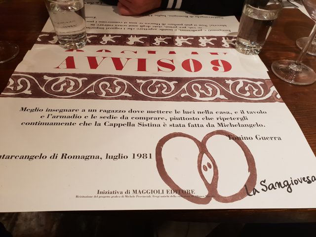 - La Sangiovesa – tovagliette con avvisi di Tonino Guerra
