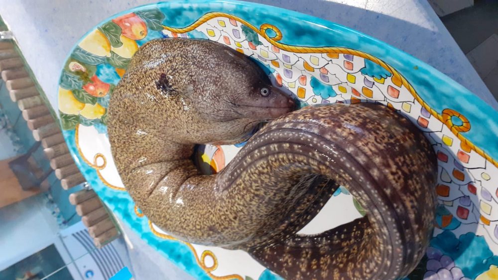 Una cena col Direttore è stata l’occasione per riassaggiare la murena, pesce dall’aspetto minaccioso ma dalle carni bianche e delicate, assai raro da trovare nei ristoranti, che Matteo prepara sia fritta che alla pizzaiola.