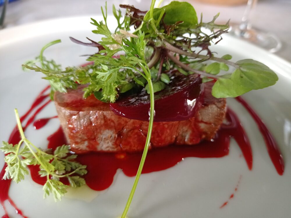 Osteriia Controfiletto di cavallo, rapa rossa e misticanza