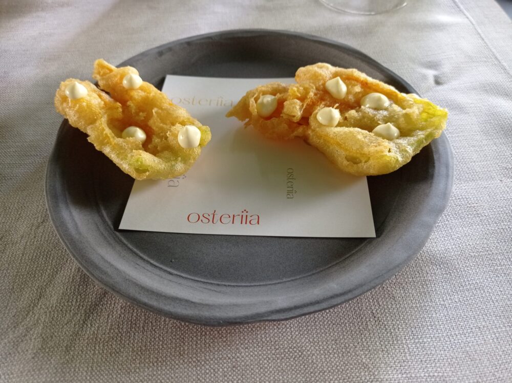 Osteriia Fiori di zucchine in tempura, con maionese e limone
