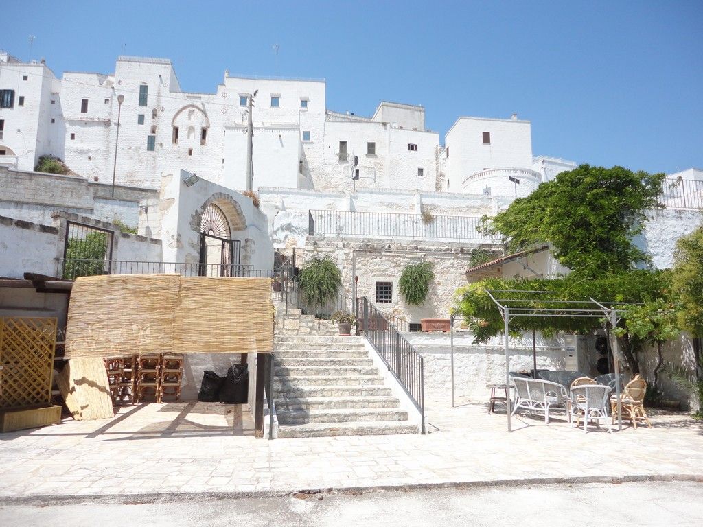 Ed il cerchio si chiude…non è vero maestro? Seeeeè, figuratevi se è abbastanza per…il Pigna. Già me lo sento rimbrottare : “ma avresti anche potuto fare un salto a Salice Salentino, lì c’è la cantina tal dei tali che fa dei buonissimi vini, sarebbe stato utile sentirli e poi parlarne…” Ma come è, e come non è, fatto sta che la mia “Odissea” questa volta l’ho vissuta davvero!!! Sulla via del ritorno da Brindisi imbocco l’uscita Ostuni (venendo da Brindisi, la terza). Già dall’uscita si vede stagliarsi sulla collinetta un presepe bianco…le case sono tutte disposte a scalare sulle pendici del piccolo rilievo, di un bianco accecante nella calura del solleone pugliese, siamo a 37°!!! Nel breve tratto di strada che mi separa dalla “città bianca”, posso ammirare gli oliveti secolari che si perdono a vista d’occhio in contrasto con la terra rossagna tipica del Salento.