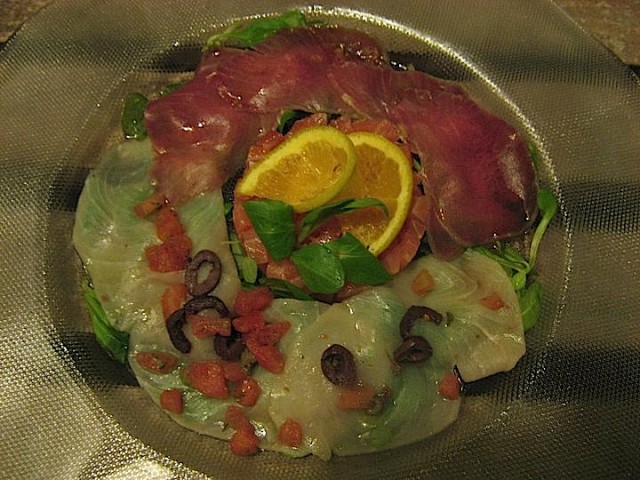 La cucina proposta punta decisamente ai prodotti del mare, è di impronta tradizionale, con qualche accento un po’ demodè, come i crudi di salmone pesce spada e tonno marinati offerti tra gli antipasti.