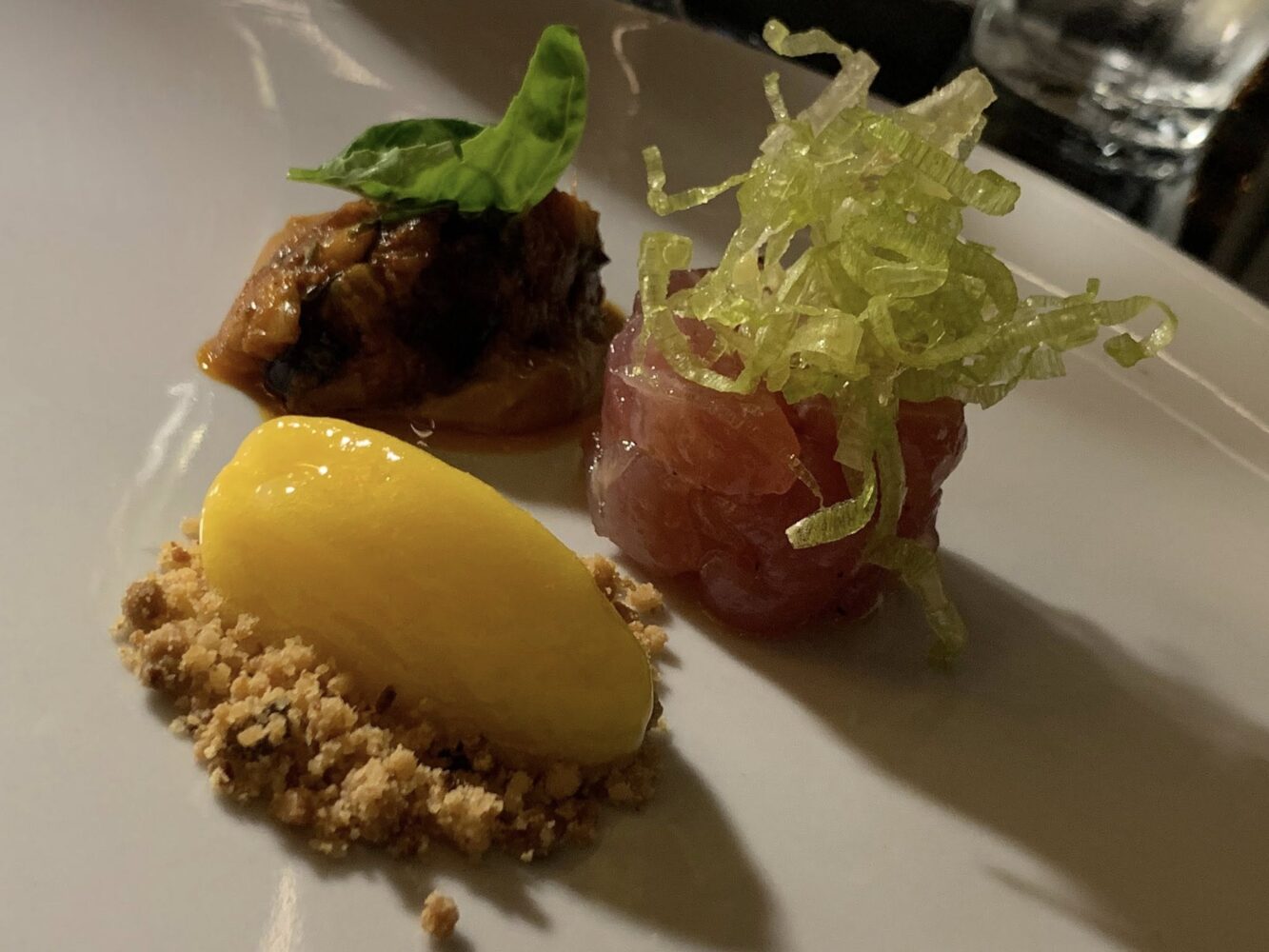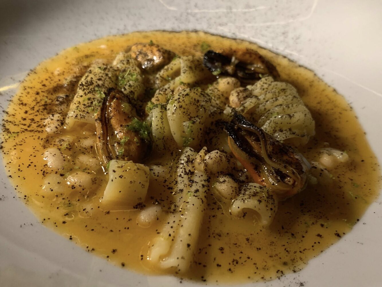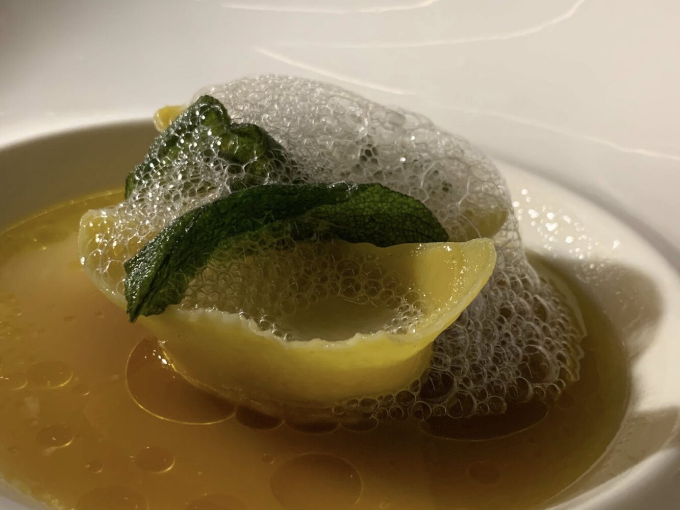 La sua è una cucina di memoria, imperdibile la sua caponatina assolutamente siciliana, di ricerca (buono il millefoglie vegetale), di comfort (una carbonara classica non eccessivamente cremosa) e di ricerca estrattiva (il brodo dei tortelli d’anatra è da antologia.