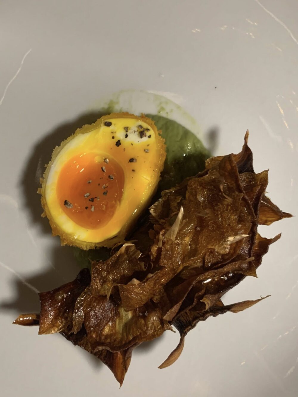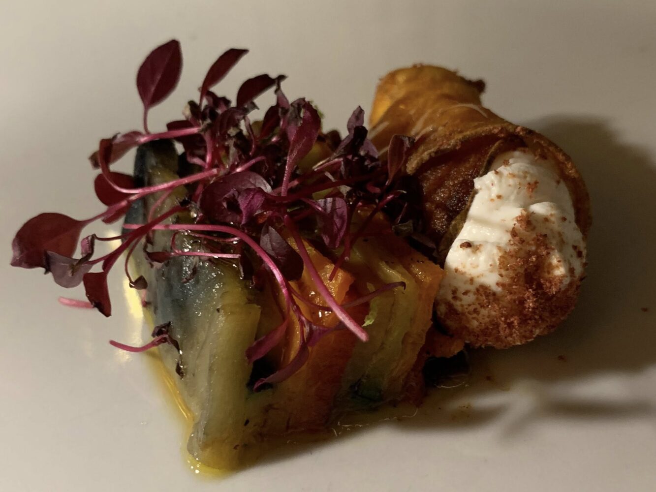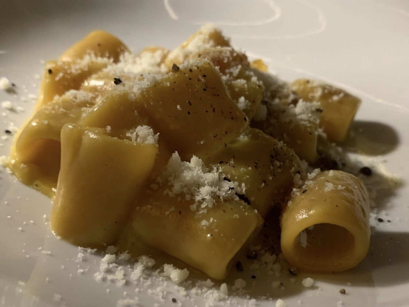 La sua è una cucina di memoria, imperdibile la sua caponatina assolutamente siciliana, di ricerca (buono il millefoglie vegetale), di comfort (una carbonara classica non eccessivamente cremosa) e di ricerca estrattiva (il brodo dei tortelli d’anatra è da antologia.
