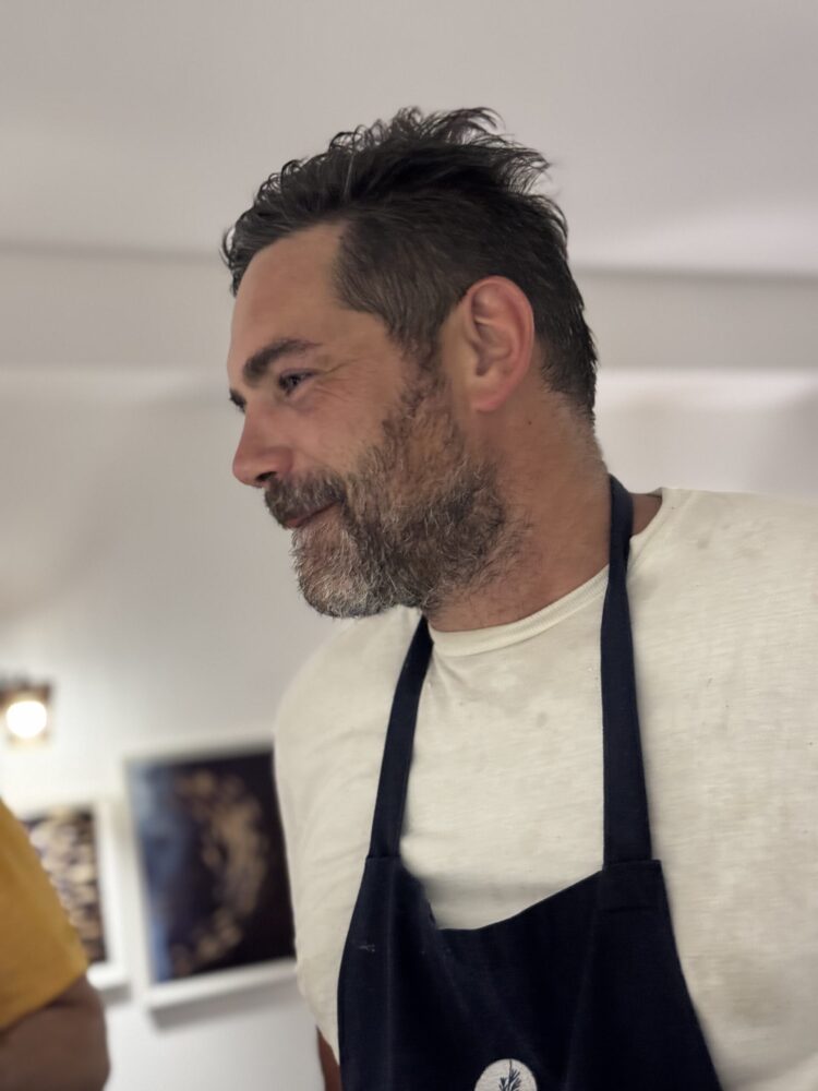 Come ci spiega Giuseppe Di Ruocco, chef e proprietario del locale, al centro di tutto c’è il rispetto per il pescato del giorno, scelto con cura e attenzione alla stagionalità. Di Ruocco ha fatto della pesca artigianale e sostenibile il suo credo, infatti non c’è un menù precisissimo, tutto va come deve andare, in base a ciò che il mare offre quel giorno, prediligendo però specie meno sfruttate e tecniche di cottura ataviche. La sua cucina si ispira alle “marinerie perdute”, un viaggio nel tempo e nello spazio che rende omaggio alle tecniche di una volta, come la cottura sulla brace, che ho amato molto, con il carbone, e alle erbe spontanee come il finocchio marino, chiamato anche Paccasassi, che dà il nome al ristorante. Questo ingrediente, ricco di aromi e proprietà nutrizionali, rappresenta un simbolo di un consumo consapevole e rispettoso del mare. Non è così frequente in effetti trovarlo nelle cucine, ma qui diventa un vero e proprio fill rouge.