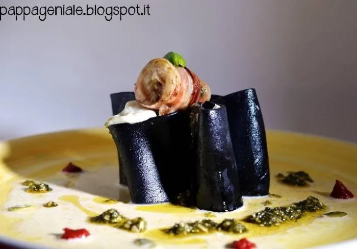 Paccheri al nero di seppia, mozzarella di bufala e involtino di triglia e pancetta 13/3/2013 Torna a: Paccheri al nero di seppia, mozzarella di bufala e involtino di triglia e pancetta | Contest Le Strade della Mozzarella Paccheri al nero di seppia, mozzarella di bufala e involtino di triglia e pancetta