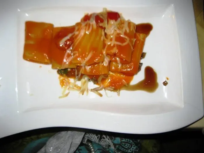 Paccheri con pachino infornati, caviale di melanzane, salsa di birra scura e provola affumicata 1/9/2011 Torna a: Paccheri con pachino infornati, caviale di melanzane, salsa di birra scura e provola affumicata Paccheri con pachino infornati, caviale di melanzane, salsa di birra scura e provola affumicata