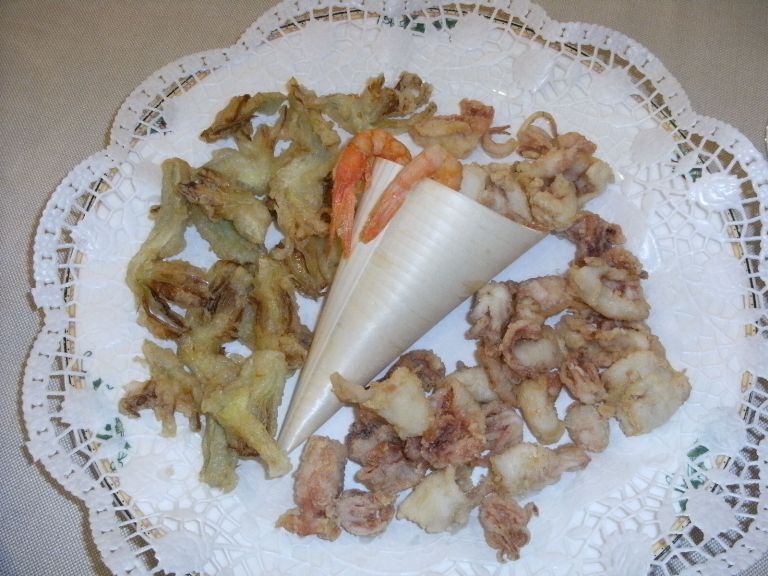 Per il piacere delle papille, ecco un altro appetizer: Cuoppo fritto di calamaretti e carciofi. Piacevolmente croccante sotto i denti e per niente unto.