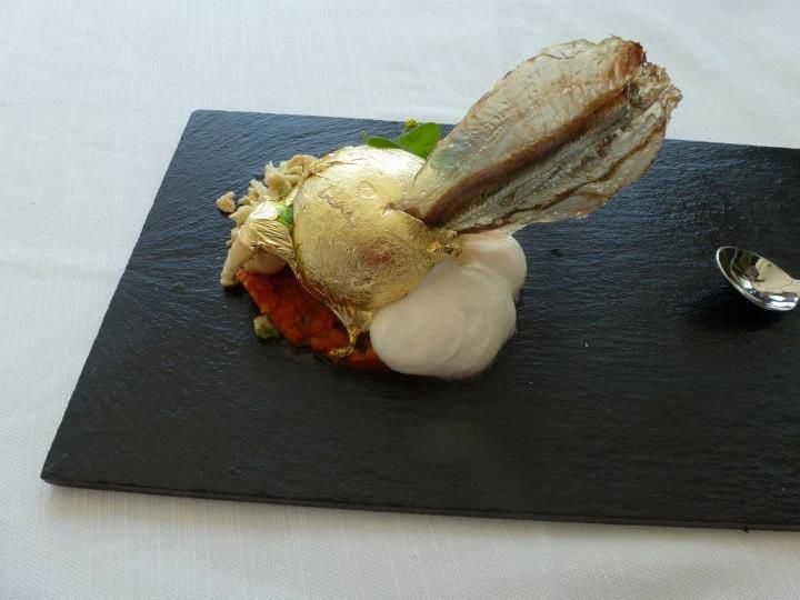 A Paestum ha portato due piatti complessi e semplici allo stesso tempo:il raviolo di mozzarella su finta genovese di bufala e una salsa di ricotta di bufala.