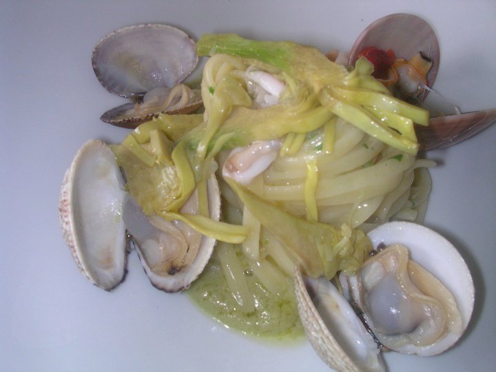 Devo dire che abbiamo apprezzato molto l’introduzione di questo classico, linguettoni di Gerardo Di Nola, con frutti di mare (vongole, fasolare), due calamari e carciofi (siamo in uno dei territori italiani di maggiore produzione). Esecuzione plastica, semplicemente perfetta. Solo gli idioti provinciali e saccenti non si emozionano di fronte alla normalità interpretata con arte.