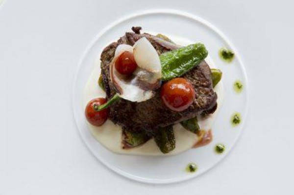 Dopo questo primo momento di socialità ci si è spostati nella zona del gazebo per la cena vera e propria. In apertura tris di antipasti composto da una sfoglina riccia ripiena di scarole e olive su maionese di alici, una cupoletta di ricotta di bufala e provolone del monaco con pomodori secchi San Marzano e una millefoglie di melanzane e mozzarella di bufala campana su dressing di basilico. A seguire maccheroncelli con capperi, pomodorini e olive nere di Gaeta alla marinara, filetto di vitello bardato con guanciale su peperoni friggiteli scottati e spuma di mozzarella.