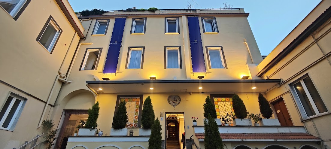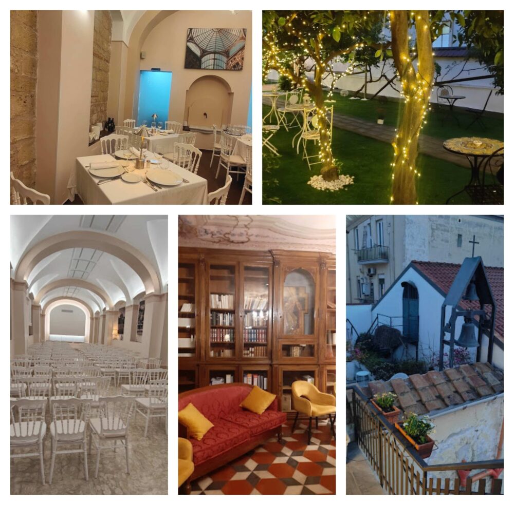 Un Palazzo abilmente recuperato con stile ed eleganza negli ultimi anni. Il lavoro minuzioso della famiglia di Caterina Tuccillo che ha rilevato in fitto Palazzo Cappuccini e trasformato in hotel con camere confortevoli, deliziose sale eventi, il chiostro intimo e curato e una ristorazione d’esperienza. Con il marito Mariano Lepore racconta gli interventi eseguiti nella struttura, sempre nel rispetto della storicità del luogo. Ci sono un presepe del Settecento all’ingresso, un’accogliente biblioteca, la sala del coro, la terrazza che d’estate ospita bar ed eventi con un particolare scorcio sul Vesuvio, la vista della sala colazione sulla campana dell’adiacente chiesa, il giardino quasi “segreto”.