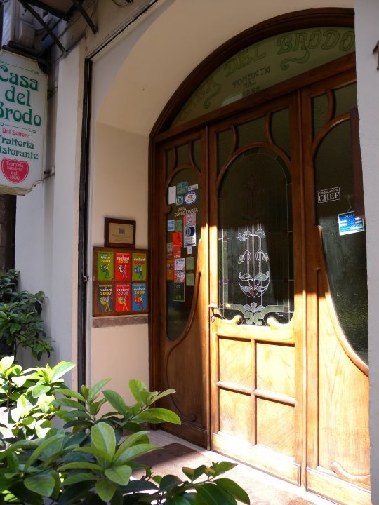 E con questo nome la trattoria oggi è comunemente conosciuta. In cento anni si sono scodellati migliaia di piatti di brodo che, almeno fino ad una ventina di anni fa – con l’ingrediente distintivo dello zafferano usato per le patate – insieme alle carni del bollito, era il piatto principe di questa tavola. Bellissima la foto in bianco e nero con il fondatore della trattoria che all’inizio del secolo scorso serviva i piatti di brodo praticamente dalla cucina in strada, all’ingresso del locale.
