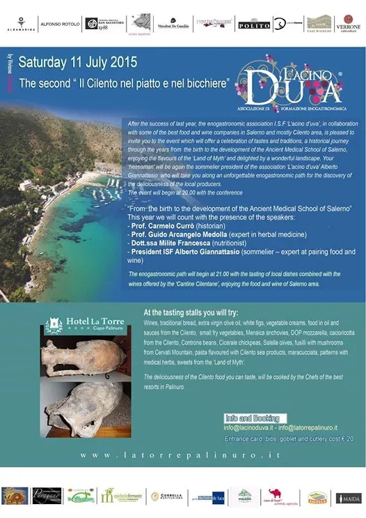 2° edizione Il Cilento nel piatto e nel bicchiere 3/7/2015 Torna a: Palinuro, 11 luglio. 2° edizione Il Cilento nel piatto e nel bicchiere 2° edizione Il Cilento nel piatto e nel bicchiere