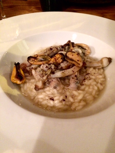 Il “Riso frutti di mare e caffè” è giustamente sapido e al dente e quella spolverata di caffè aromatizza con classe il gusto dei molluschi.