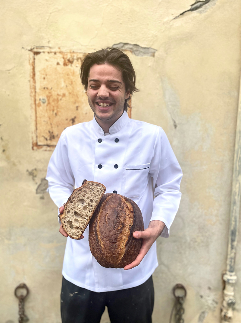 Francesco Braconi di Gigliola a Lucca, partecipa a Caputo Bread Project 2022, iniziativa siglata 50 Top Italy e Mulino Caputo, con Pane al castagnaccio.