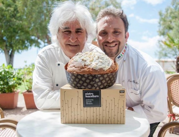 Il panettone di Macellaro (che quest’anno ha vinto il Premio 3 Torte nella Guida alle Pasticcerie del Gambero Rosso) è un prodotto d’eccellenz,a realizzato con il grano carosella, l’acqua del Monte Cervati e il lievito madre, il burro di bufala, gli aromi naturali, il fico bianco e i canditi prodotti in azienda e l’olio extravergine di oliva bio. Pietro fa lievitare il panettone per circa 48 ore. La lievitazione prescelta consente di produrre anidride carbonica in quantità adeguata per far aumentare di 3 o 4 volte il volume della pasta.