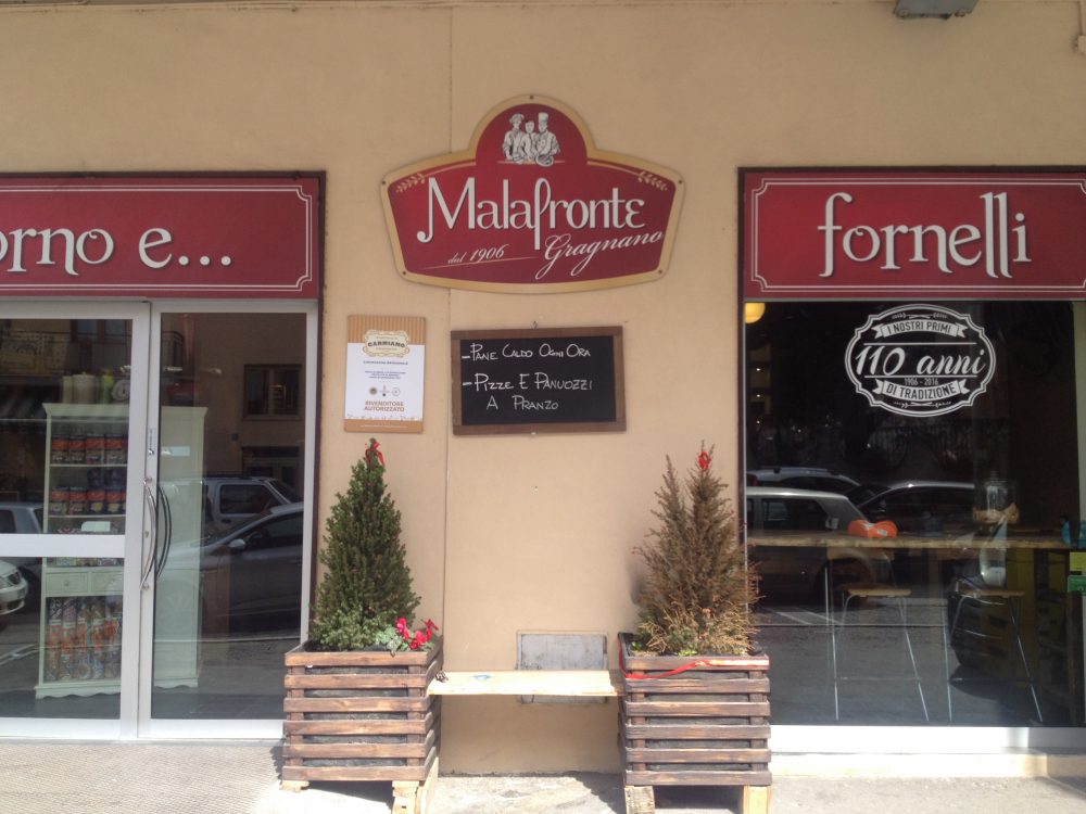 Da oltre 100 anni il cognome Malafronte a Gragnano vuol dire pane. Siamo alla quarta generazione di Maestri fornai coi fratelli Massimiliano, Adriano e Daniele che gestiscono il panificio sotto lo sguardo attento di papà Ciro. Pane dunque in tante declinazioni: col lievito madre, con lievito di birra ma lunga lievitazione, ai cereali antichi. Pani buoni e digeribili e che si possono degustare anche a distanza di un paio di giorni, soprattutto nei formati più grandi. Senza dimenticare freselle, taralli e grissini fatti a mano con olio extravergine.