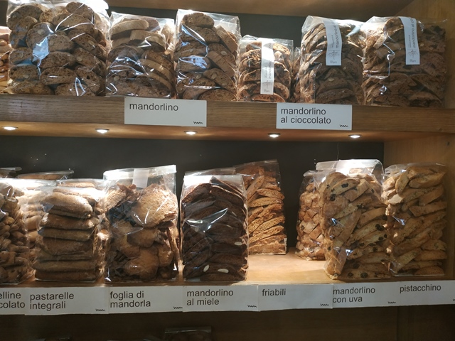 I biscotti, invece, vanno dai 15 ai 39€ euro al chilo: il più venduto è il mandorlino al cioccolato, ma anche “gli spicci” sono molti amati dalla clientela.