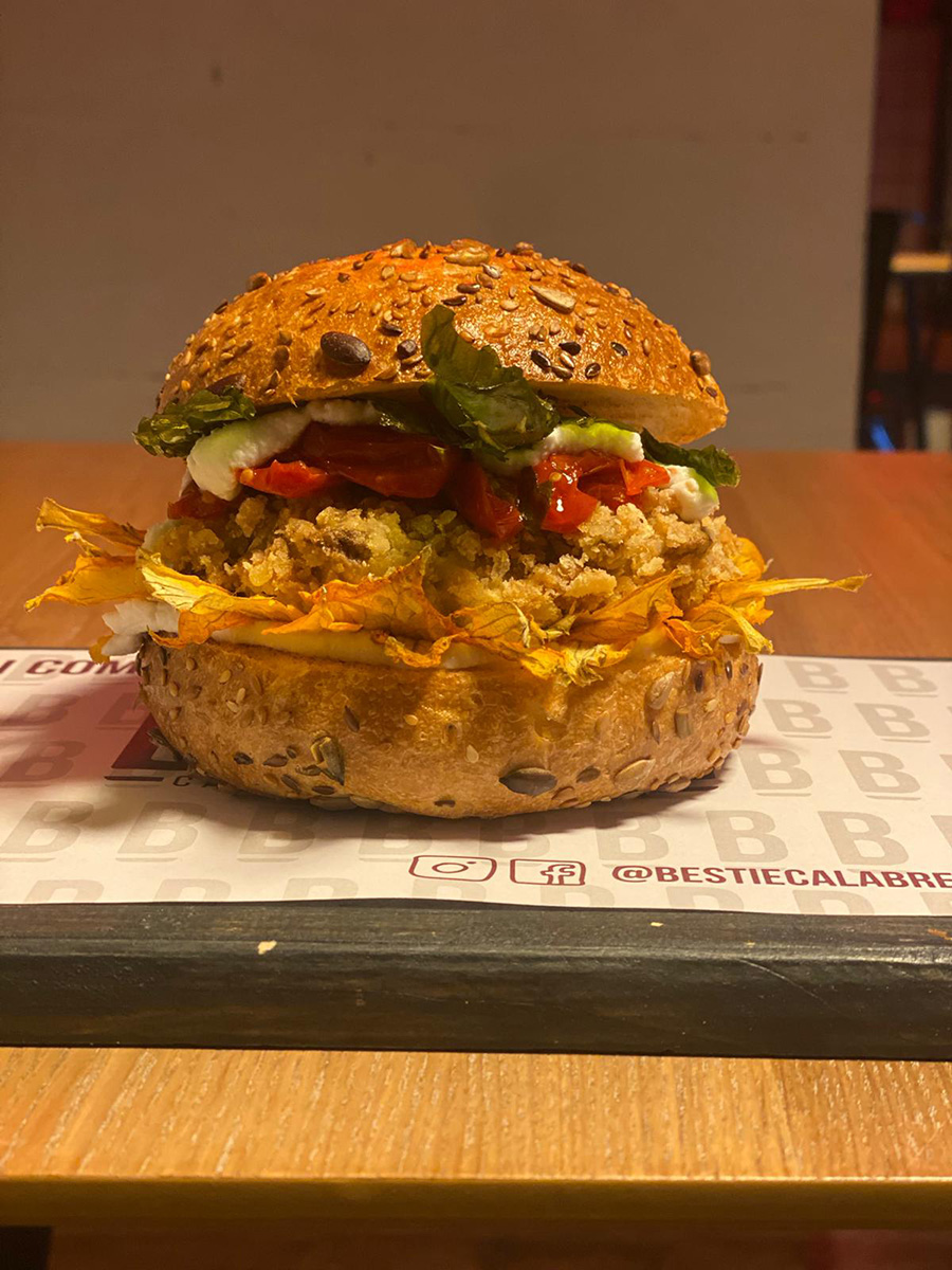 Michele Franco di Bestie Calabresi Selvaggi a Montepaone Lido, partecipa a Veggie Style 2022 – L’Altra Faccia del Panino – iniziativa siglata 50 Top Italy e D’Amico, che rende protagonista il fungo trifolato champignon Logrò – con Pankofungo.
