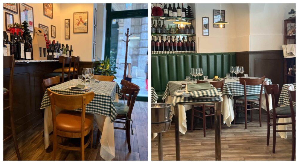In questo tessuto vivo, Paolina trova il suo spazio lungo il corso che attraversa il centro storico, una strada abitata ogni giorno da passi e incontri. La porta dialoga con la strada, l’ingresso accompagna il movimento della vita del paese anche all’interno, dove l’atmosfera prende forma attraverso tovaglie a quadretti, sedie in legno, luci calde e materiali semplici. Un gusto old style, con suggestioni anni Cinquanta rilette in chiave pugliese, sostiene il tempo della tavola e favorisce una permanenza lenta, fatta di conversazione e ascolto.