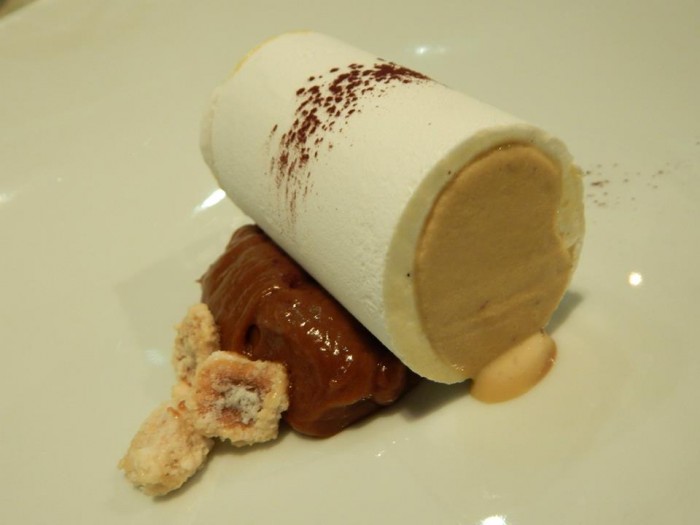 “Caffè e Nocciola” (Meringa, gelato al caffè e ganache alle nocciole). E anche questo dessert è gluten-free. La nocciola è da sballo, l’abbinamento al caffè non è un’invenzione ma viene dalla tradizione.