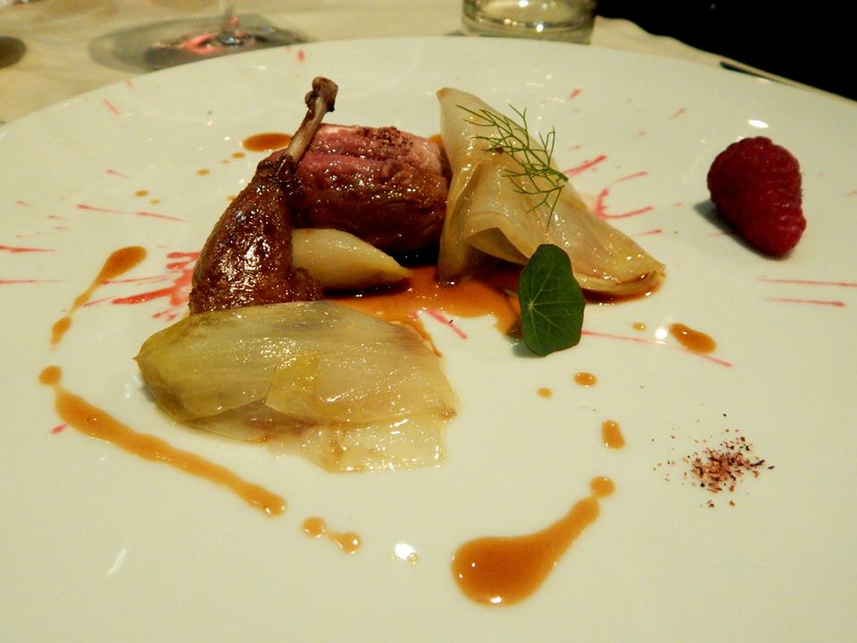 Archiviamo i primi e passiamo ai secondi: Coscio di Coniglio, sedano, cicoria e acciughe marinate. Anche qui materia prima eccezionale, ma sempre presente l’attentissimo studio degli ingredienti e la perfetta tecnica di trasformazione.