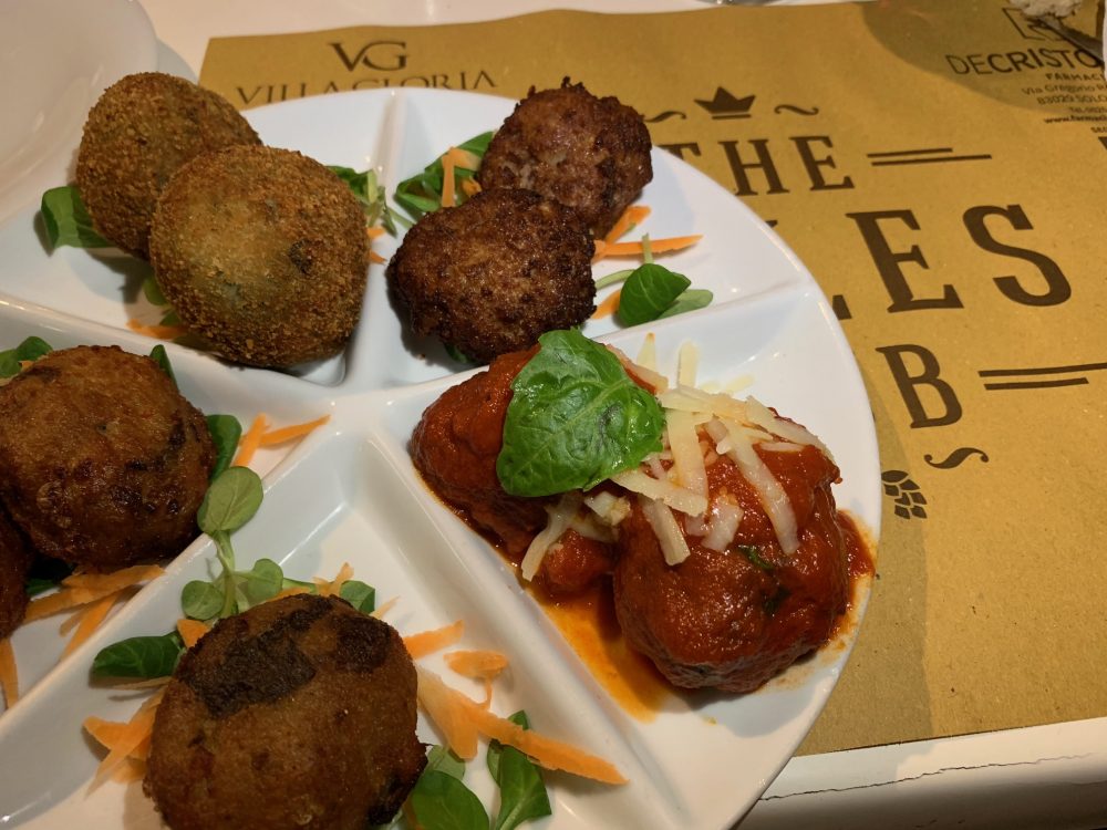Durante la degustazione, le polpette hanno fatto irruzione nella serata. Questo piatto forte del luogo viene proposto in diverse varianti. Cotte al punto giusto, succose ed equilibrate rendono il percorso degustazione una vera esperienza papillare. Premiate in vari ambiti sono state quelle al mallone , deliziose.