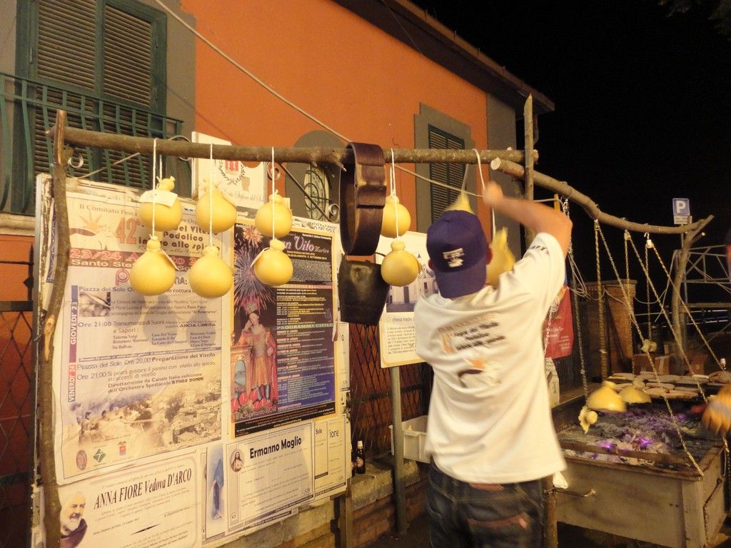 “Tanto vota, tanto gira e tanto martella” che riesce a convincere il comitato promotore dei festeggiamenti in onore a S.Vito Martire ed ottiene il ripristino della tradizionale cottura del vitello podolico intero. Coinvolge nel progetto il girovago della gastronomia (…s’è attrezzato con camper…) il toscanaccio Paolo Parisi che funge da “consulente esterno” nella delicata operazione di cottura, chiama intorno a sè il fidatissimo “selezionatore di carni”(macellaio sarebbe riduttivo per la sua grande cultura e competenza in materia) Mario Laurino, mette sù una equipe di chef-amici mica da ridere, quali Paolo Barrale, Raffaele Vitale, Gianluca D’Agostino, alcuni agriturismi della zona, e Pietro Parisi, con il quale credo più di tutti gli altri, sia in perfetta sintonia filosofica nel mettere al centro gli uomini con la loro vita, le loro storie, i loro prodotti, tipici ed irripetibili in funzione di tentare per loro un futuro diverso.