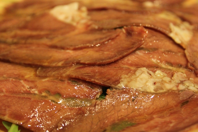 E’ guancia di vitello cotta come sa fare lui nella colatura di alici di Cetara.