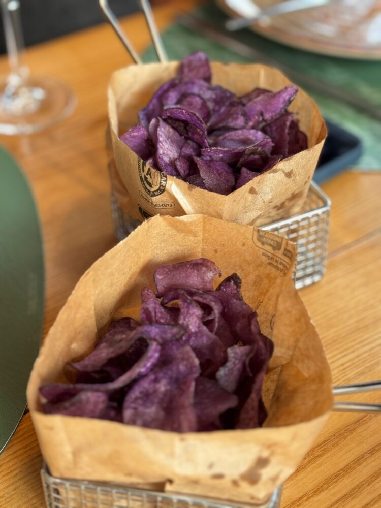 Irresistibili ad accompagnare anche le chips di patate viola. È stato davvero un problema smettere di mangiarle.