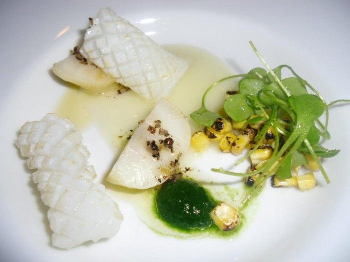 Gli amuse bouche sono ben pensati e centrati. Ottima la cozza, un po’ meno la seppia salvata dalla croccantezza del mais grigliato che regala anche il rimando fumè.