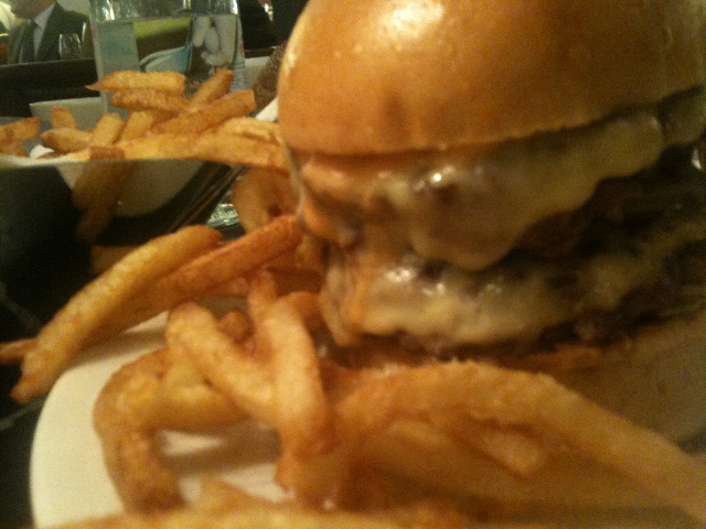 Torna il tutto come richiesto: hamburger di una carne appena potabile con passaggio di una crema formaggiata difficilmente identificabile e banale salsa di cipolle.