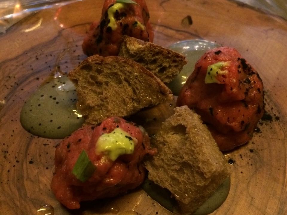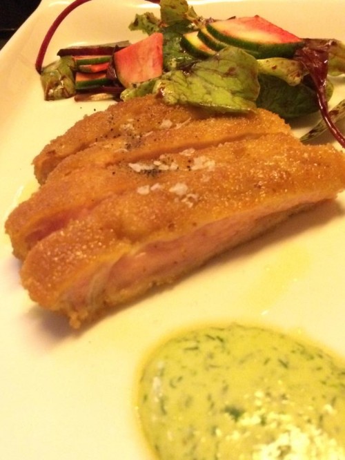 Sia il pesce marinato che la crema con i semi di zucca sono stati due ingressi efficaci e salivanti.