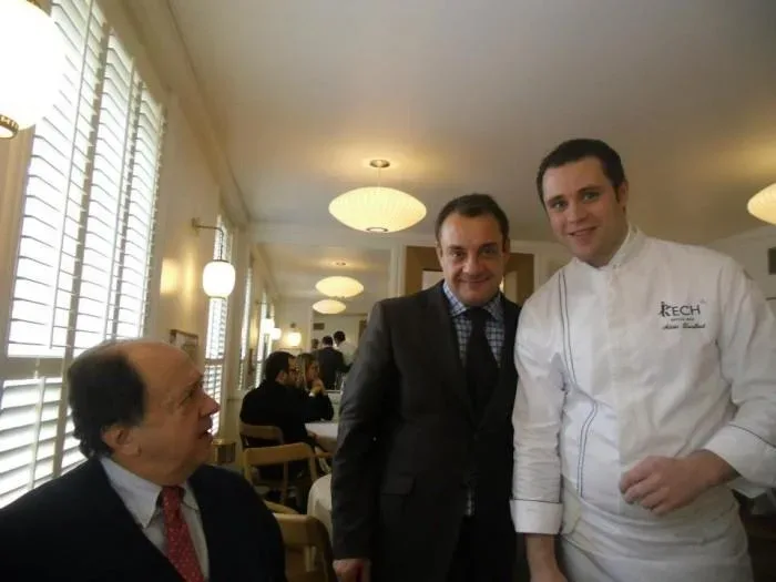 Enzo Vizzari con il maitre Eric Mercier e lo chef Adrien Trouilloud 3/12/2012 Torna a: Parigi, ristorante Rech di Ducasse Enzo Vizzari con il maitre Eric Mercier e lo chef Adrien TrouilloudSuccessiva →
