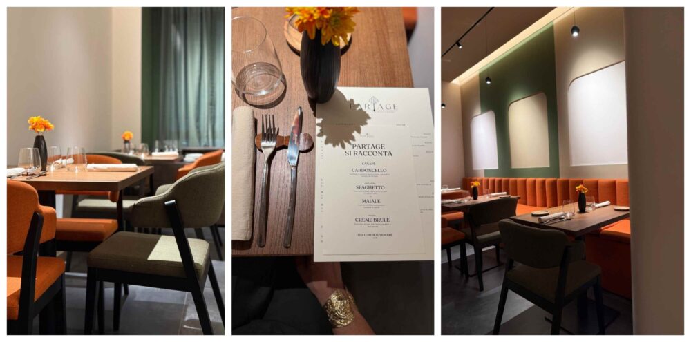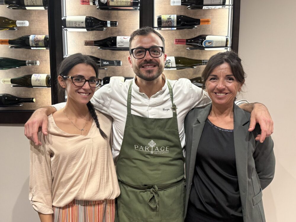 All’interno, Partage è una dichiarazione estetica di equilibrio: divani color arancio bruciato, luci soffuse, pareti dalle linee morbide. Un’atmosfera che invita a rallentare, a ritrovare il gusto del tempo. A renderla viva ci sono Francesca Vaccaro, sorella di Giorgio, e la madre Annalisa Colantuono, presenze discrete ma fondamentali. Annalisa, con la grazia che solo le madri conoscono, ha persino conseguito un diploma alberghiero di sala per accompagnare i figli in questa avventura. Insieme hanno costruito un luogo che è più di un ristorante: è una casa che sa accogliere con garbo e intelligenza, dove ogni attenzione, un sorriso, un tono di voce, un dettaglio, diventa parte del racconto.