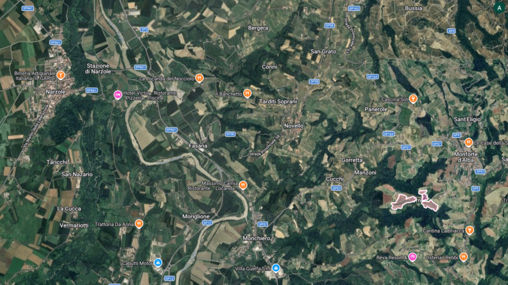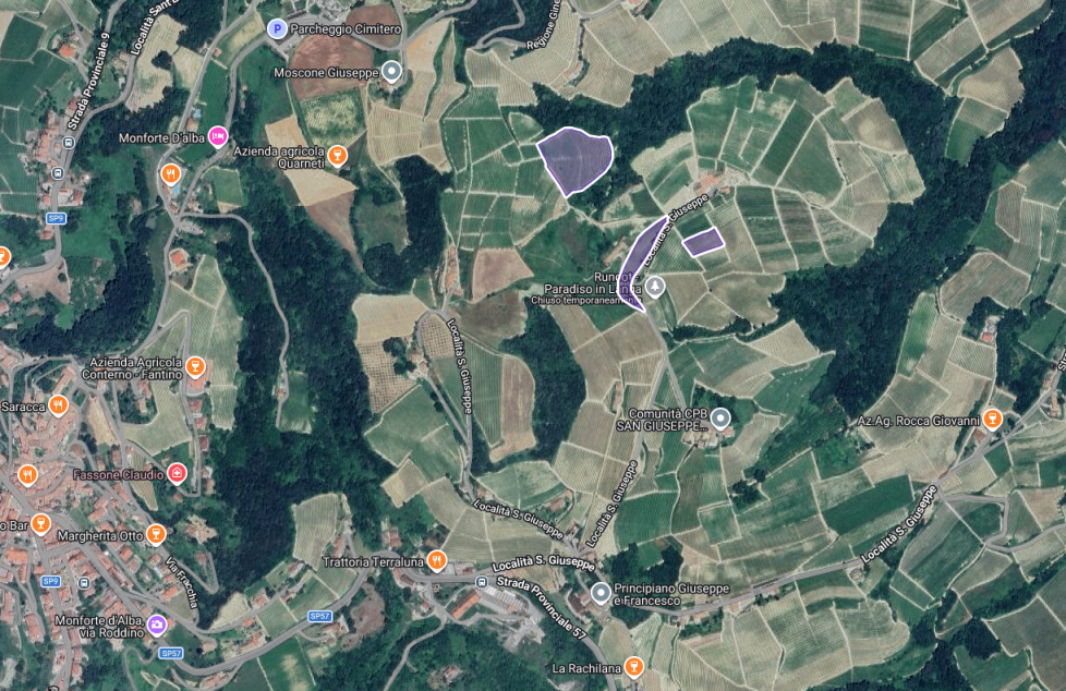 Le uve provengono dai vigneti Rocche (sud/sud-est) e Munie (sud/ovest) in località Bussia, nel comune di Monforte d’Alba, da piante di età che varia dai 15 ai 50 anni, giacenti su terreni ad un’altitudine di cica 300 metri.