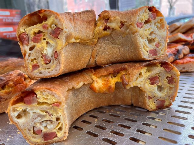 In questo piccolo forno del quartiere Appio Claudio, il panificatore Giacomo Carlizza e la compagna Selenia preparano la loro versione del tortano, con farina Marino di tipo 2 e farro, a lievitazione naturale: la gustosa farcitura è composta dalle uova dell’azienda agricola biologica di Olivero Claudio (Monasterolo di Savigliano CN), pecorino romano Dop di Cibaria Srl (Castel Gandolfo, RM), Parmigiano Reggiano Dop, la provola Latterie Gargiulo e il salame corallina.