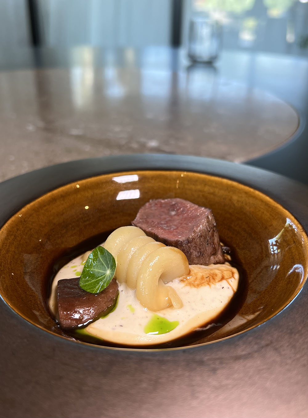 Al quarto posto Simone Pino, di Orobianco Ristorante ad Alicante, in Spagna, con Trottola, spuma di polenta taragna, spugnole, capriolo e polvere di mirtilli fermentati.