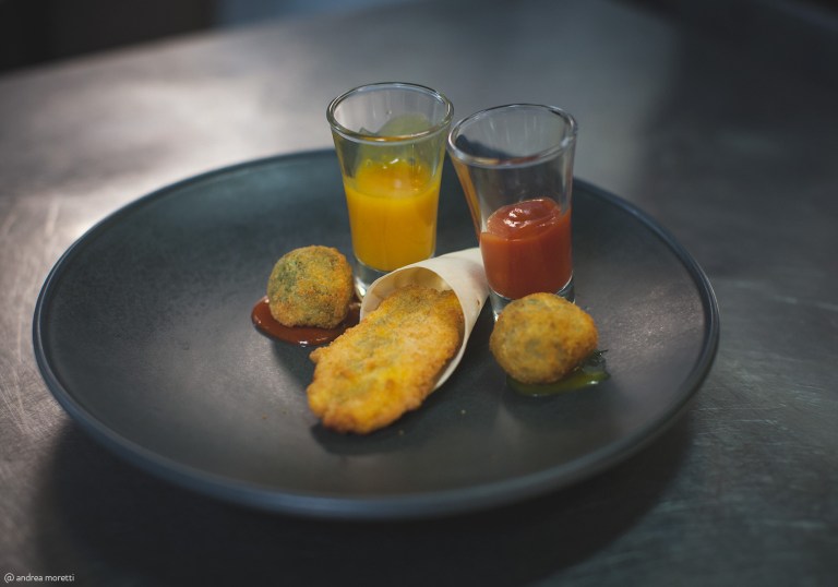 Tornato in patria, decise allora che avrebbe puntato anche lui a fare fortuna con il pesce (e molto altro) fritto, con gli opportuni accorgimenti: pescato locale – a cominciare dalle alici –, frittura di qualità e un nome azzeccato: non la solita friggitoria ma la Cuopperia – dal cuoppo, il cono di carta paglia in cui viene servito tradizionalmente lo street food fritto campano – in cui coinvolse anche il figlio Gaetano, all’epoca quindicenne e appena bocciato a scuola: una “punizione” che si sarebbe rivelata una fortuna. Il resto è storia, ma nonostante si sia preso le sue rivincite Pasquale non ha resistito alla provocazione: proporre il “suo” fish&chips agli inglesi: alici aperte a libretto e farcite con la provola prima di essere panate e fritte, accompagnate da crocchette di mallone – ricetta povera campana a base di patate schiacciate, acciughe e cime di rapa, che con il loro piacevole gusto amaro riequilibrano i sapori – e dai ketchup di pomodoro rosso e giallo messi a punto insieme a Così com’é. Così si chiude il cerchio tra il borgo di Cetara e l’elegante quartiere londinese di Chelsea, vicino a Kensington e al Baglioni, che nacque come villaggio di pescatori sulle sponde del Tamigi.