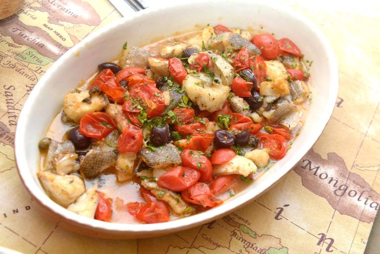 E’ il turno del baccalà. Un tris di baccalà, per la precisione: Mantecato con pane Carasau, in tempura con insalata di scarola riccia, in guazzetto con piennolo e olive di Gaeta. La tradizione c’è. L’impronta del 2.0 pure. Ottimo.