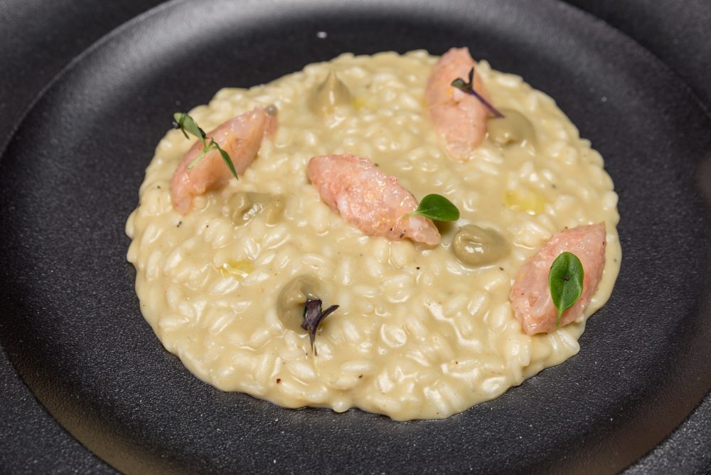 Risotti di Massimo Carleo – canocchie-mazzancolle-speck Latronico
