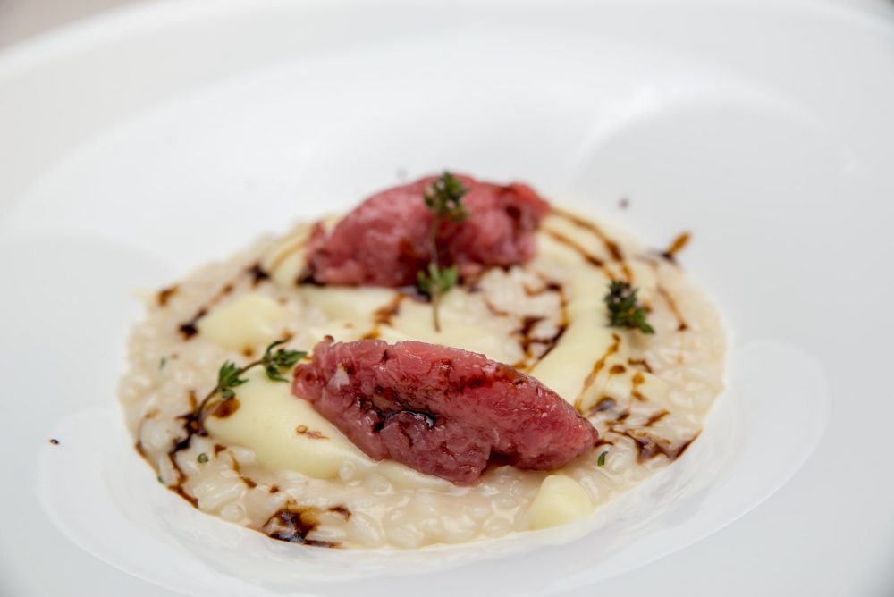 Risotti di Massimo Carleo – crema di patate al timo-tartare di podolica