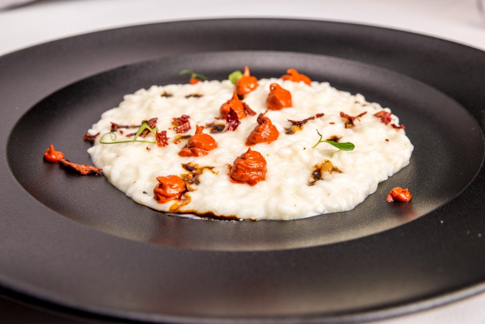Risotti di Massimo Carleo – mosto di vino cotto-ketchup di cruschi di Senise