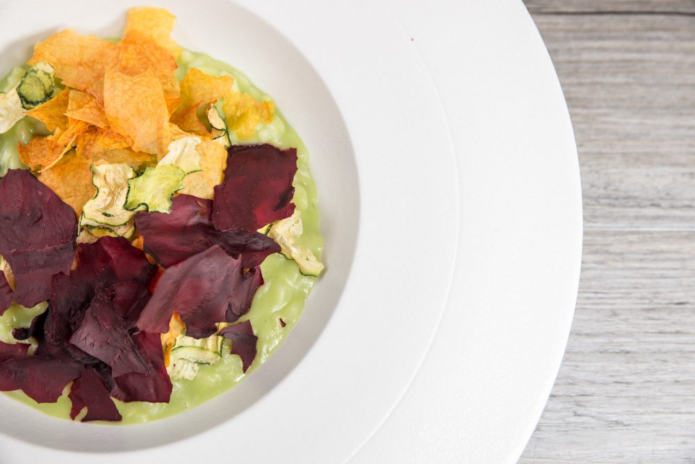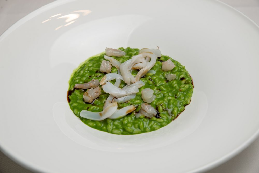 Risotti di Massimo Carleo – crema di piselli-gamberi-seppie