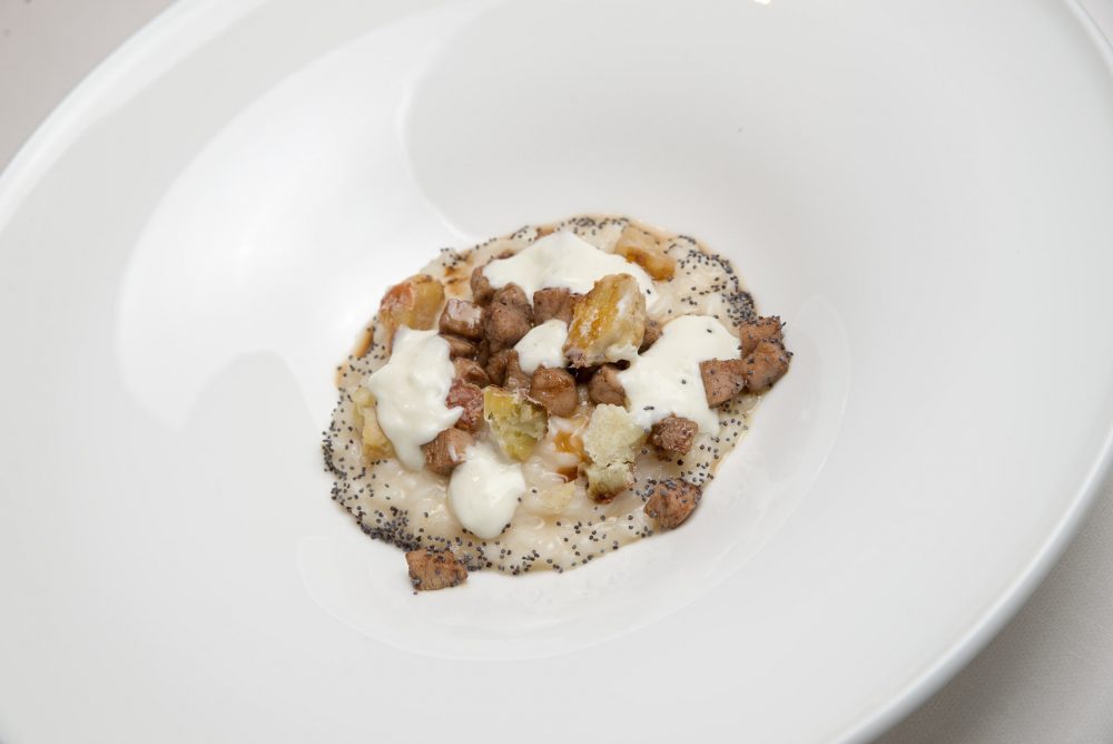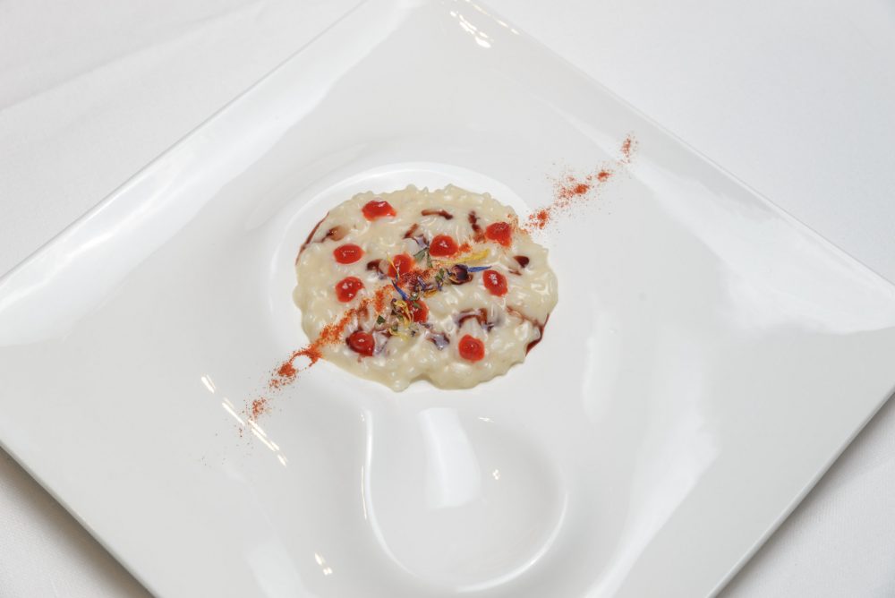 Risotti di Massimo Carleo – speck di latronico – vino cotto