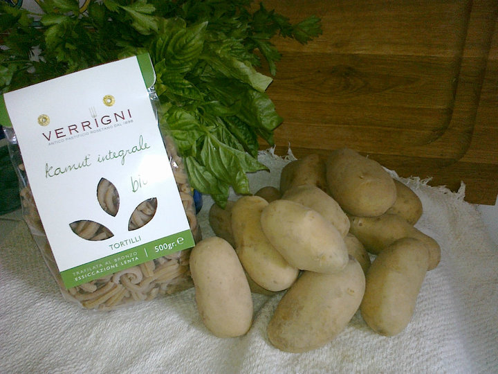 Nella mia ultima trasferta calabra ho fatto il pieno di patate in Sila. Marina dall’Abruzzo ha portato un po’ di pasta Verrigni, ed ecco qui un light lunch:-)