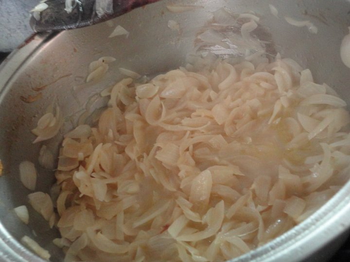 Versare l’olio in una pentola, non aspettare il punto di fumo, ed aggiungere le cipolle, una leggera indoradura e versare il vino e mettere qualche foglia di alloro e la manciata di pepe nero.