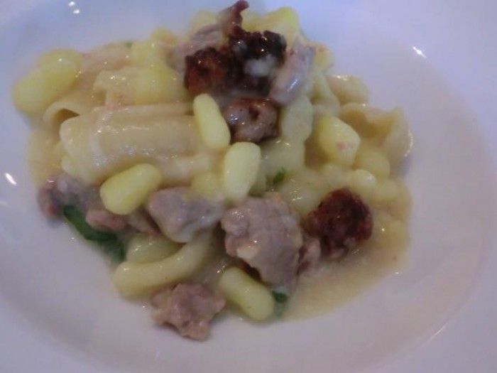 Pasta e patate con salsiccia di maialino nero