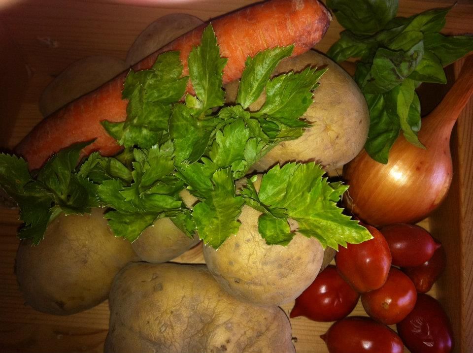 Questa è la mia ricetta, tutte le materie prime sono di mia produzione, è una ricetta semplice, ecco gli ingredienti.